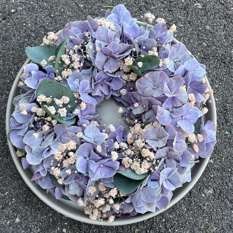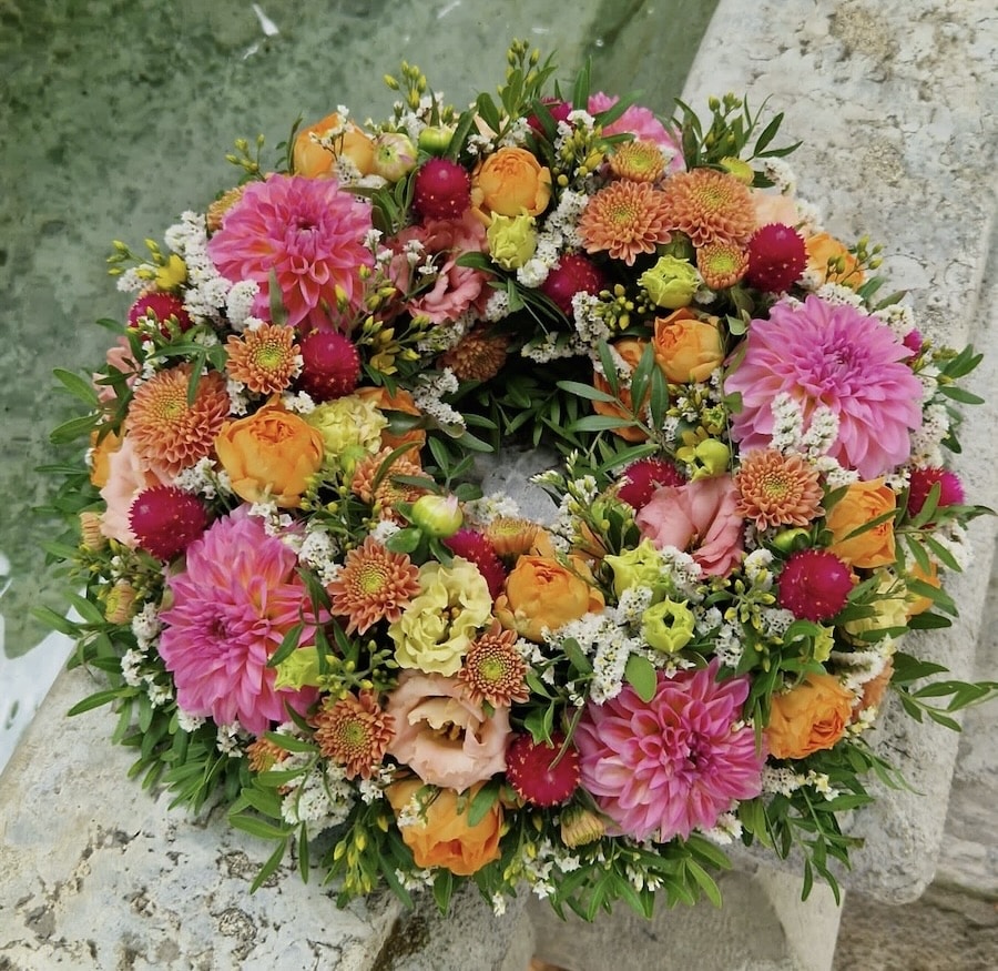 Blumenkranz mit saisonalen Blumen. Die Blumen können in Art und Farbe je nach Verfügbarkeit abweichen.