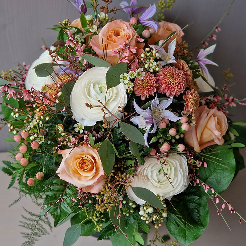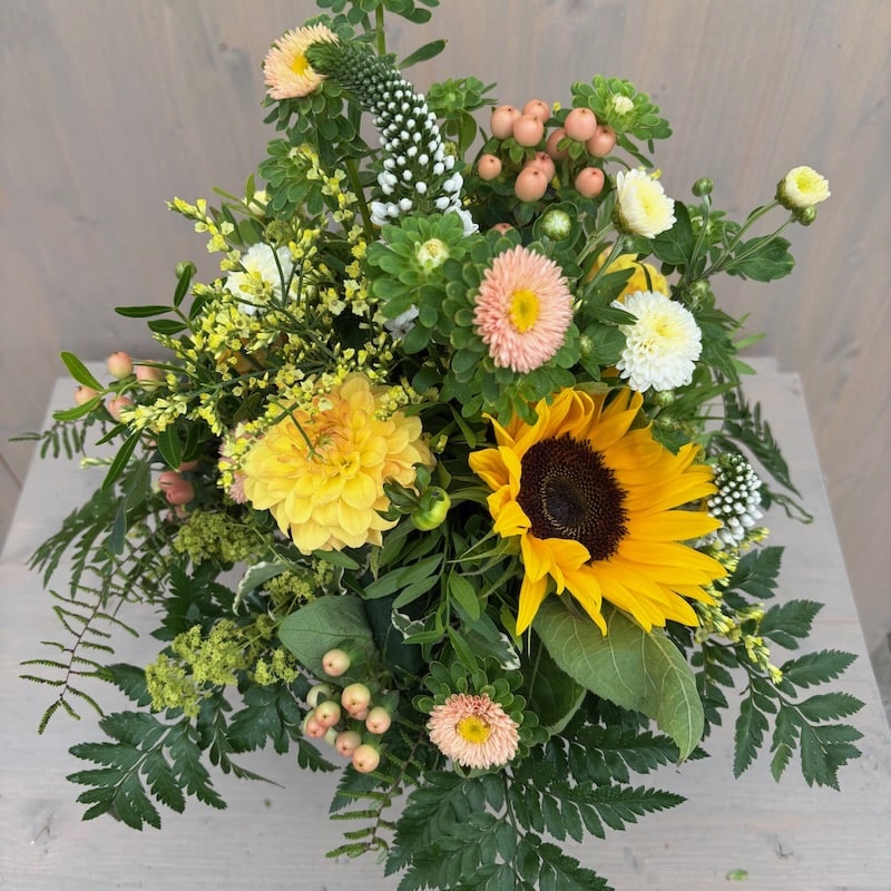 Blumenstrauss mit saisonalen Blumen. Die Blumen können in Art und Farbe je nach Verfügbarkeit abweichen.